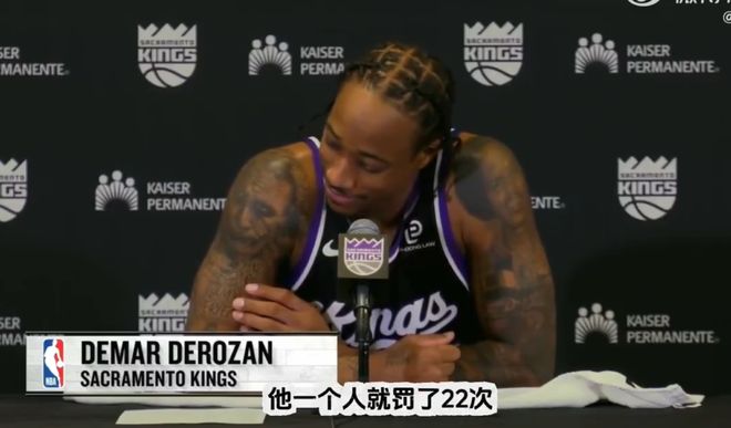 最后,当德罗赞看到里夫斯一个人22个罚球时,一直摇头,